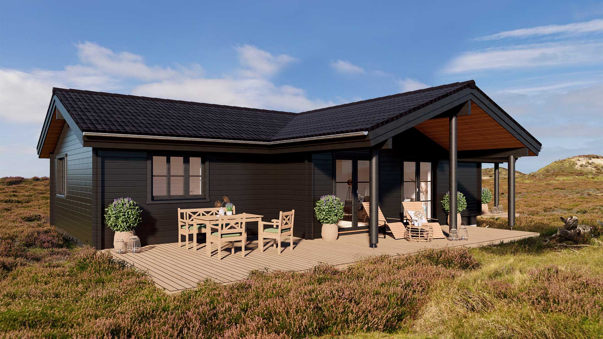 Prisen for et færdigbygget sommerhus, inkl. arkitekthonorar, tegninger, statiske beregninger, ansøgning om byggetilladelse, projektstyring, tæthedstest (Blowerdoor-test) samt byggestyring frem til indflytning. Ekskl. byggeforberedelsespakke.