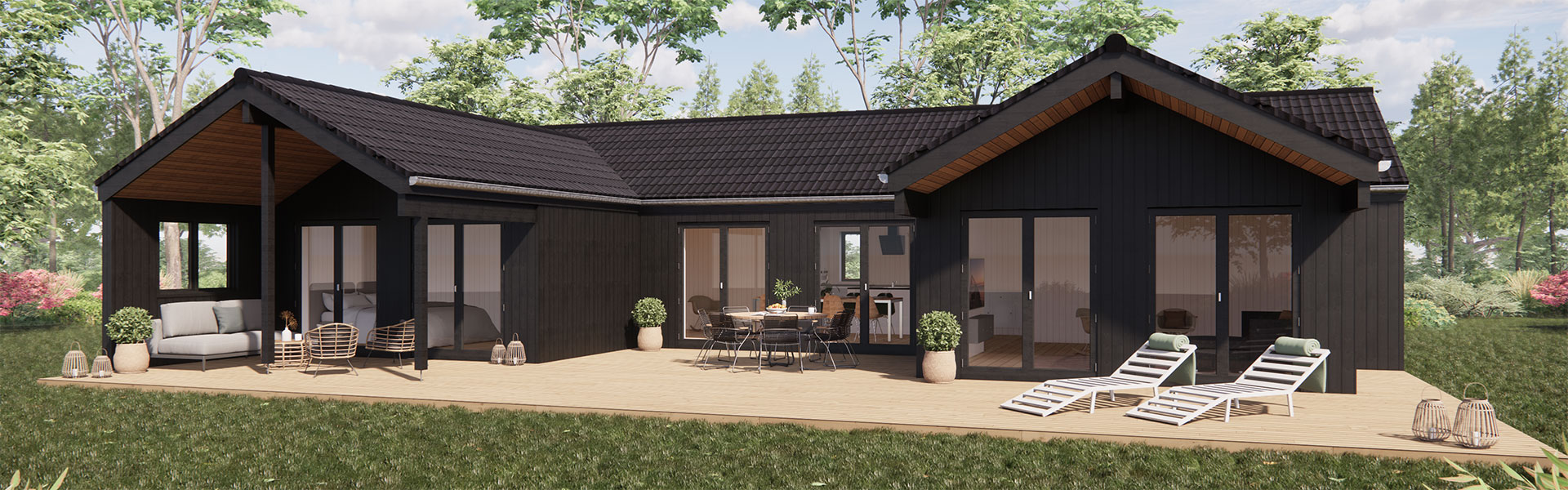 Prisen for et færdigbygget sommerhus, inkl. arkitekthonorar, tegninger, statiske beregninger, ansøgning om byggetilladelse, projektstyring, tæthedstest (Blowerdoor-test) samt byggestyring frem til indflytning. Ekskl. byggeforberedelsespakke.