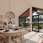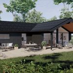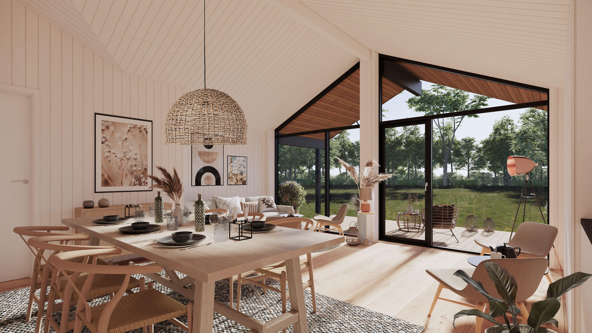 Merkur 114/97 er et dejligt og funktionelt sommerhus med plads til hele familien. Her er tænkt over hver eneste kvadratmeter, så huset føles lyst og rummeligt – perfekt til både afslapning og samvær. Det store køkken-alrum ligger centralt i huset med god plads omkring spisebordet og hyggelig sofakrog med udsigt til terrassen. De store vinduespartier giver et skønt lysindfald og trækker naturen helt ind i stuen.