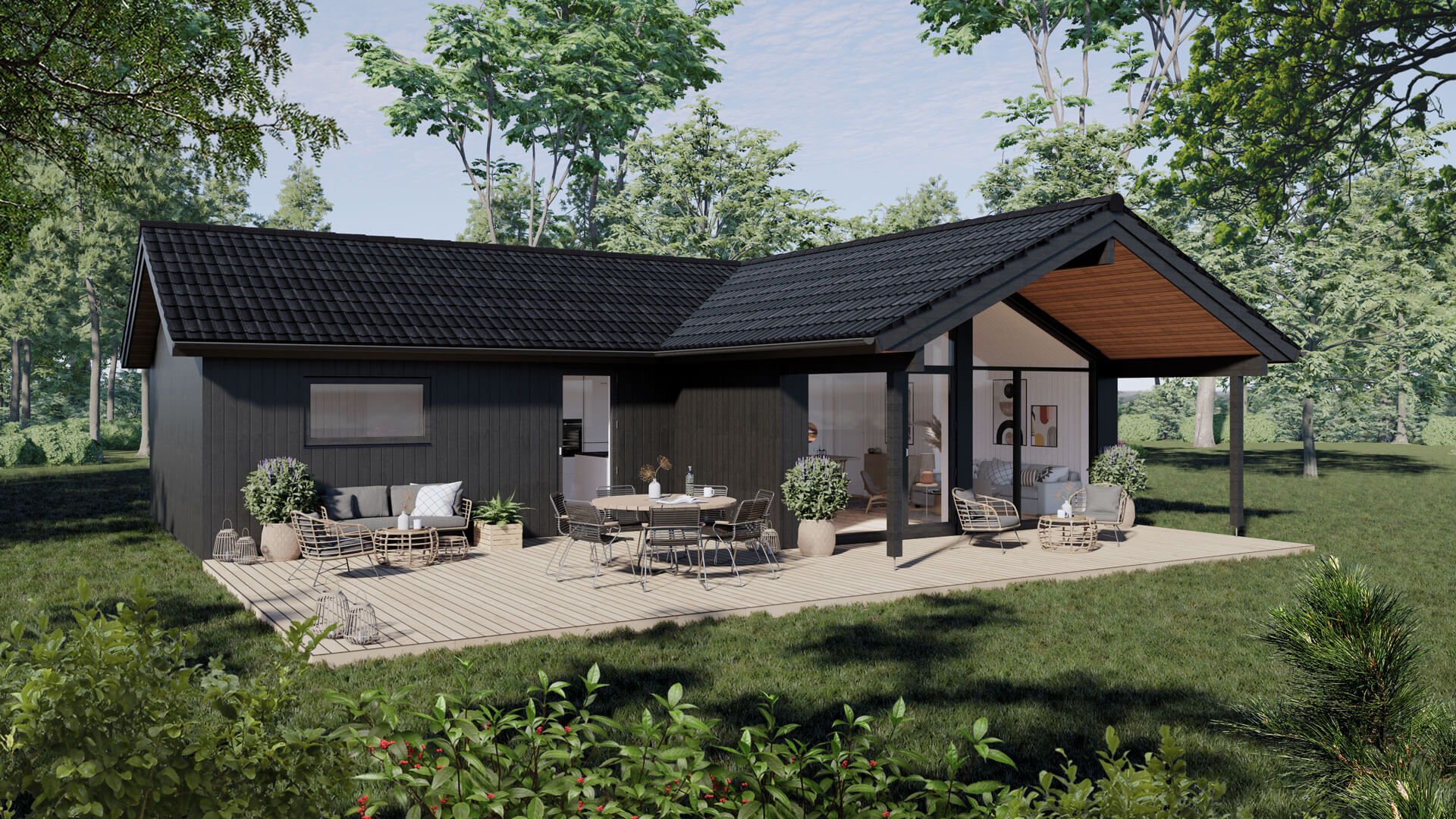 Køb Merkur 114/97 inkl. grund, tilslutningsafgifter og 51 m² terrasse – heraf 17 m² overdækket – samt haveanlæg, indkørsel og komplet udstyr. Et nøglefærdigt sommerhus klar til at danne ramme om mange dejlige ferieminder.