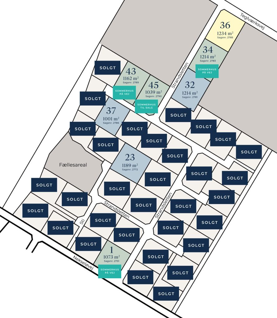Her har vi flere sommerhuse under opførelse samt en række flotte sommerhusgrunde af varierende størrelser til salg.