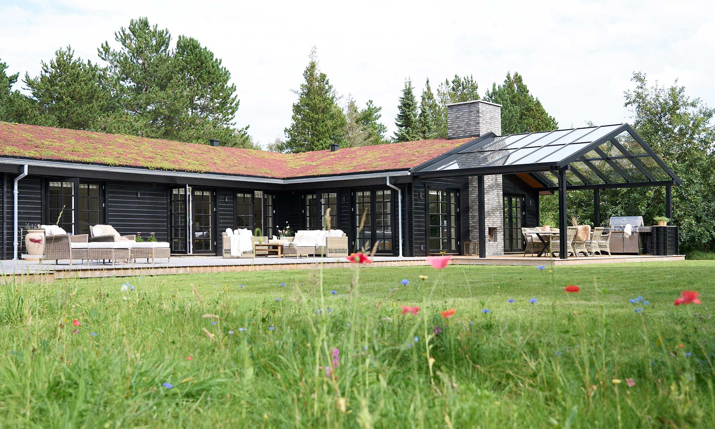 Den overdækkede loungeterrasse skaber naturlig læ og gør det let at nyde udelivet – uanset vejret.