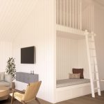 I stuen kan I nyde udsigten og samtidig få direkte adgang til det indbydende overdækkede loungeområde via dobbeltdørene. Alkoven og hemsen er et hit hos børnene og skaber en praktisk ekstra soveplads til overnattende gæster.