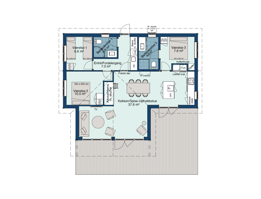 Bebygget areal 90 ㎡ / 6 + 2 sovepladser